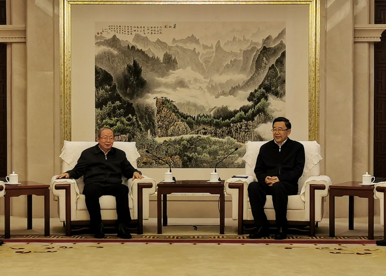 彭森會(huì)長(zhǎng)會(huì)見(jiàn)孫志剛書(shū)記(圖右)