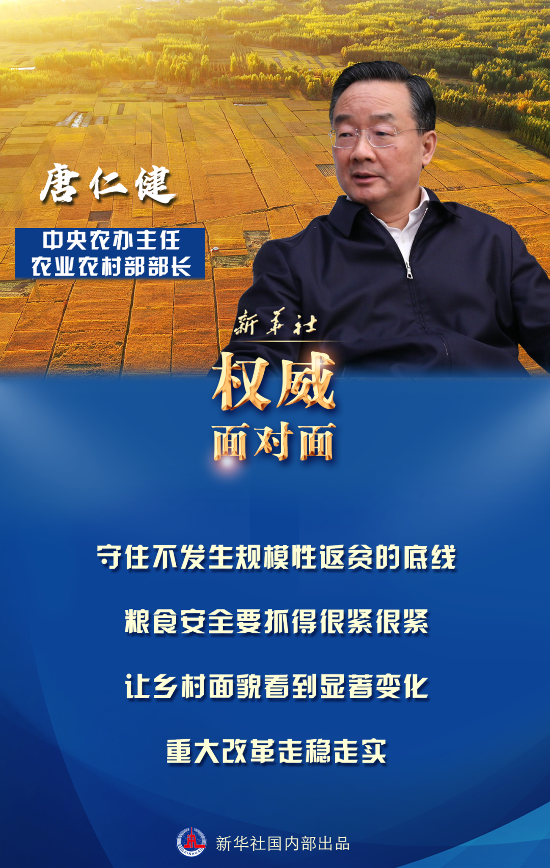?習(xí)近平總書記在中央農(nóng)村工作會(huì)議上強(qiáng)調(diào),全黨務(wù)必充分認(rèn)識(shí)新發(fā)展階段做好“三農(nóng)”工作的重要性和緊迫性,堅(jiān)持把解決好“三農(nóng)”問題作為全黨工作重中之重,舉全黨全社會(huì)之力推動(dòng)鄉(xiāng)村振興,促進(jìn)農(nóng)業(yè)高質(zhì)高效、鄉(xiāng)村宜居宜業(yè)、農(nóng)民富裕富足。近日,中共中央、國務(wù)院印發(fā)《關(guān)于全面推進(jìn)鄉(xiāng)村振興加快農(nóng)業(yè)農(nóng)村現(xiàn)代化的意見》,也就是2021年中央一號(hào)文件。文件公開發(fā)布之際,中央農(nóng)辦主任、農(nóng)業(yè)農(nóng)村部部長唐仁健就文件貫徹落實(shí)等相關(guān)問題回答了記者的提問。