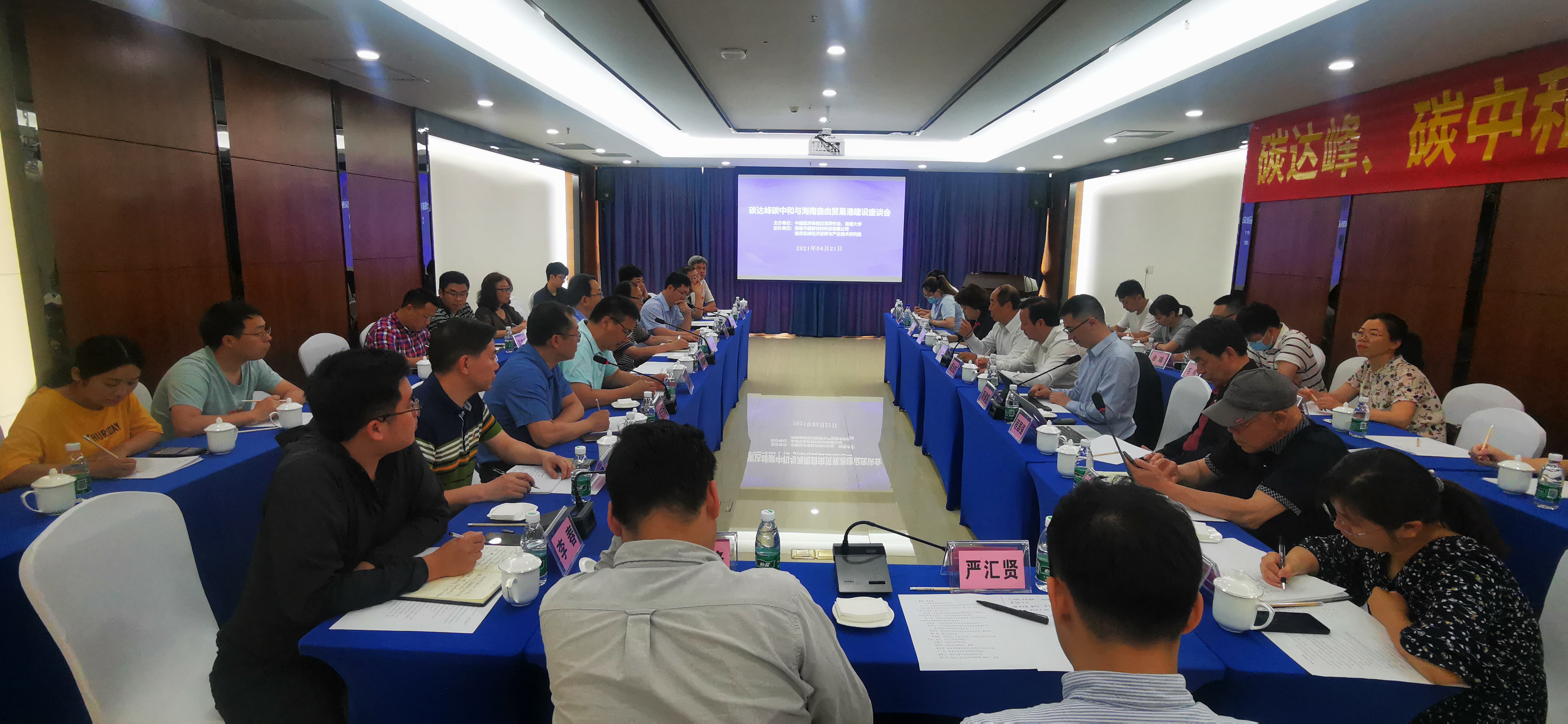 2021年4月21日,我會(huì)與海南大學(xué)聯(lián)合舉辦海南自貿(mào)港碳達(dá)峰碳中和體制機(jī)制改革座談會(huì)。我會(huì)常務(wù)副會(huì)長(zhǎng)兼秘書長(zhǎng)趙艾發(fā)表主旨演講,海南大學(xué)黨委書記武耀廷致歡迎詞。與會(huì)領(lǐng)導(dǎo)和專家學(xué)者就生態(tài)文明建設(shè)體制機(jī)制改革,推進(jìn)碳達(dá)峰、碳中和與海南自由貿(mào)易港建設(shè)研究等議題進(jìn)行了探討交流。
