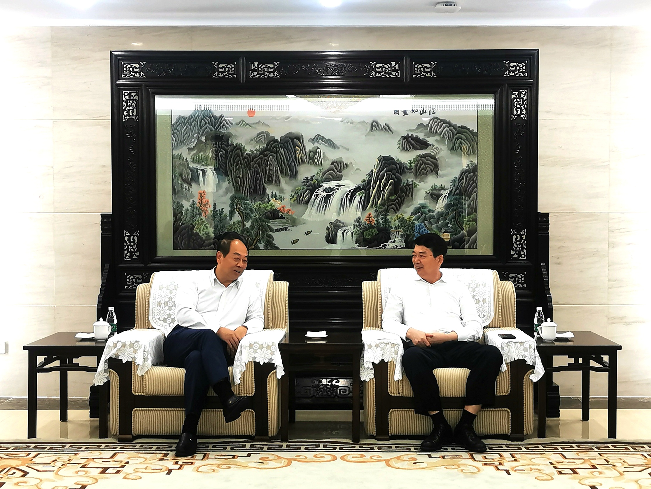 我會(huì)常務(wù)副會(huì)長(zhǎng)兼秘書長(zhǎng)趙艾(左)和海南大學(xué)黨委書記武耀廷(右)座談