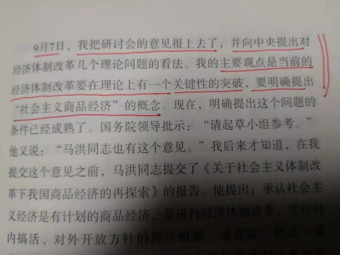 有意思的是,在十二屆三中全會(huì)召開之前,8月底,您在北京西苑旅社(現(xiàn)西苑飯店)召開研討會(huì),并在9月7日將研討意見上報(bào),建議中央“要明確提出‘社會(huì)主義商品經(jīng)濟(jì)’的概念”(后來見到有關(guān)領(lǐng)導(dǎo)這段批示:“請(qǐng)起草小組閱,馬洪同志也有這個(gè)意見。”)對(duì)于中國經(jīng)濟(jì)體制改革的目標(biāo)和理念,幾家研究報(bào)告(包括體改委、社科院以及南開報(bào)告等),可謂“不謀而合”。此時(shí),雖然與您未曾謀面,但有一種“神交”的感覺。