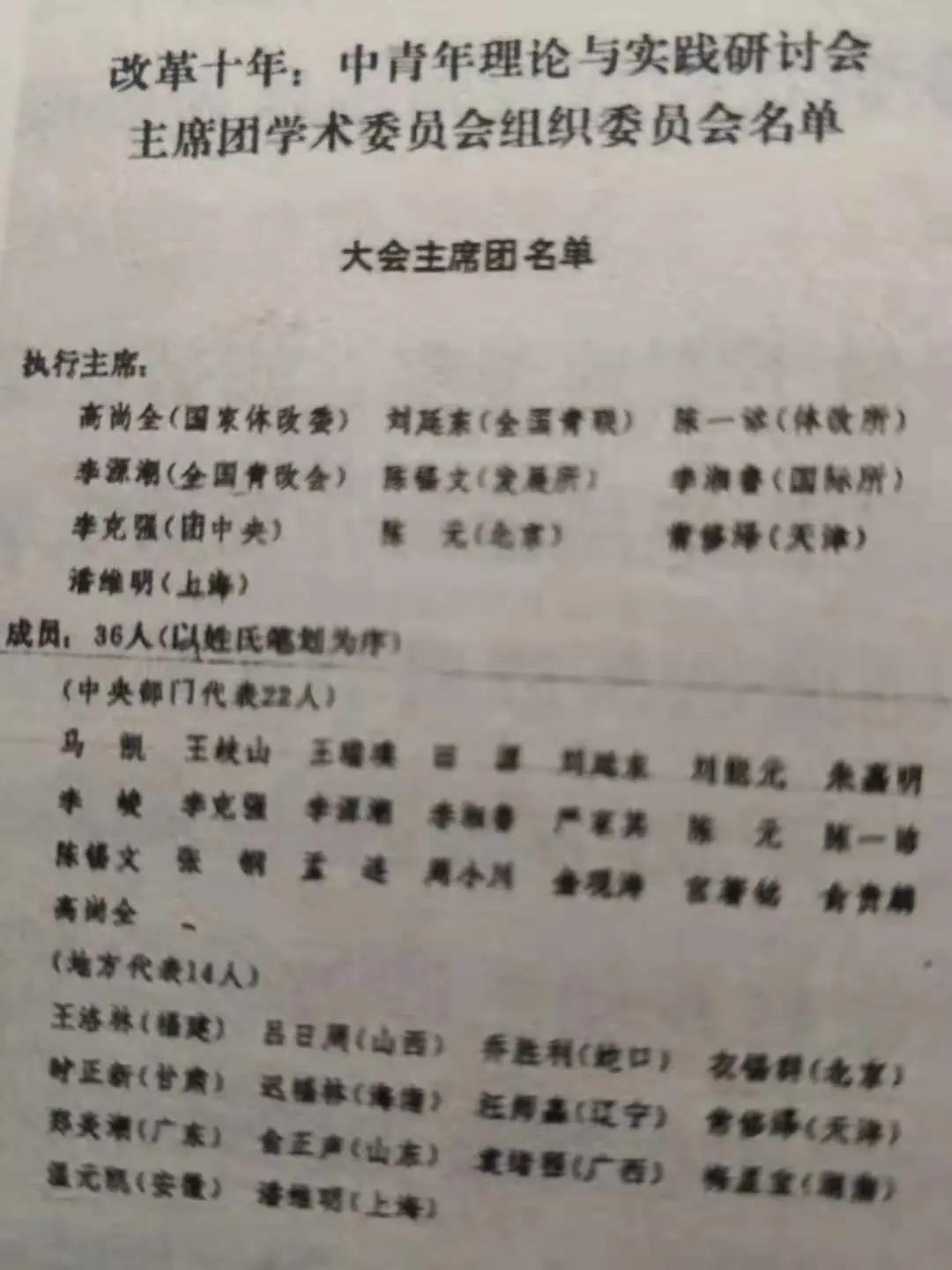 更使我難以忘懷的是,1989年春天的 “改革十年”大會(huì)(全稱為“改革十年:中青年理論與實(shí)踐研論會(huì)”),在北京京豐賓館舉行。近日,微信群流傳當(dāng)年大會(huì)主席團(tuán)名單,您位列十名執(zhí)行主席之首(我作為天津代表忝列其中)。在這個(gè)有全國400多位代表參加的大會(huì)上,各種思潮涌現(xiàn):穩(wěn)健改革、偏于保守和偏于激進(jìn)三種意見激烈爭(zhēng)辯。我參加了幾次執(zhí)行主席會(huì)議。在您和李克強(qiáng)、李源潮、劉延?xùn)|等執(zhí)行主席的共同主持下,會(huì)議順利進(jìn)行并圓滿結(jié)束。閉幕前,受到中央政治局、國務(wù)院領(lǐng)導(dǎo)和中央顧問委員會(huì)老同志的接見。在改革十年這一關(guān)鍵節(jié)點(diǎn)上的會(huì)議,受到各方關(guān)注和重視,是很不容易的。對(duì)這樣一個(gè)重要會(huì)議且直接共事數(shù)日,我又怎么能忘記?