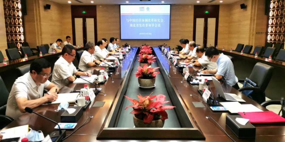 調(diào)研期間,彭森會(huì)長(zhǎng)一行在湖北省發(fā)改委組織召開(kāi)專題座談會(huì)。省發(fā)改委、經(jīng)信廳、財(cái)政廳、生態(tài)環(huán)境廳、國(guó)資委、市場(chǎng)監(jiān)管局、武漢市發(fā)改委以及省文化旅游投資集團(tuán)有限公司,武漢商貿(mào)國(guó)有控股集團(tuán)有限公司等單位負(fù)責(zé)同志參加座談會(huì)并介紹相關(guān)情況。