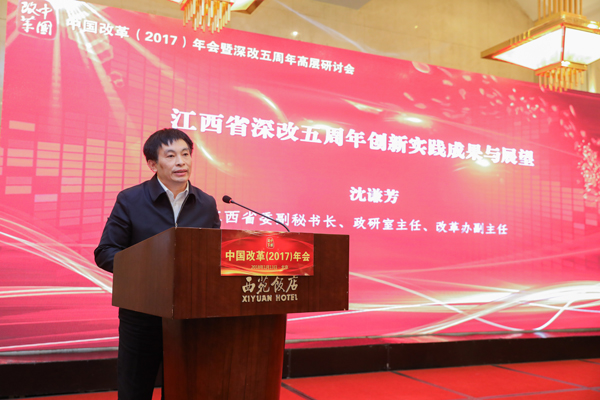 江西省委副秘書長、政研室主任、改革辦副主任沈謙芳指出,過去的五年,特別是近兩年來,江西省認真落實習(xí)近平總書記的重要指示要求,把全面深化改革作為重大的政治任務(wù)采取了一系列硬措施,推動各項改革、落實見效。江西省委省委改革辦自覺對標中央精神確保中央重大改革部署落實見效;聚焦重點領(lǐng)域關(guān)鍵環(huán)節(jié)取得一批有影響實踐成果;建立健全改革落實機制取得了一批有價值的制度成果。