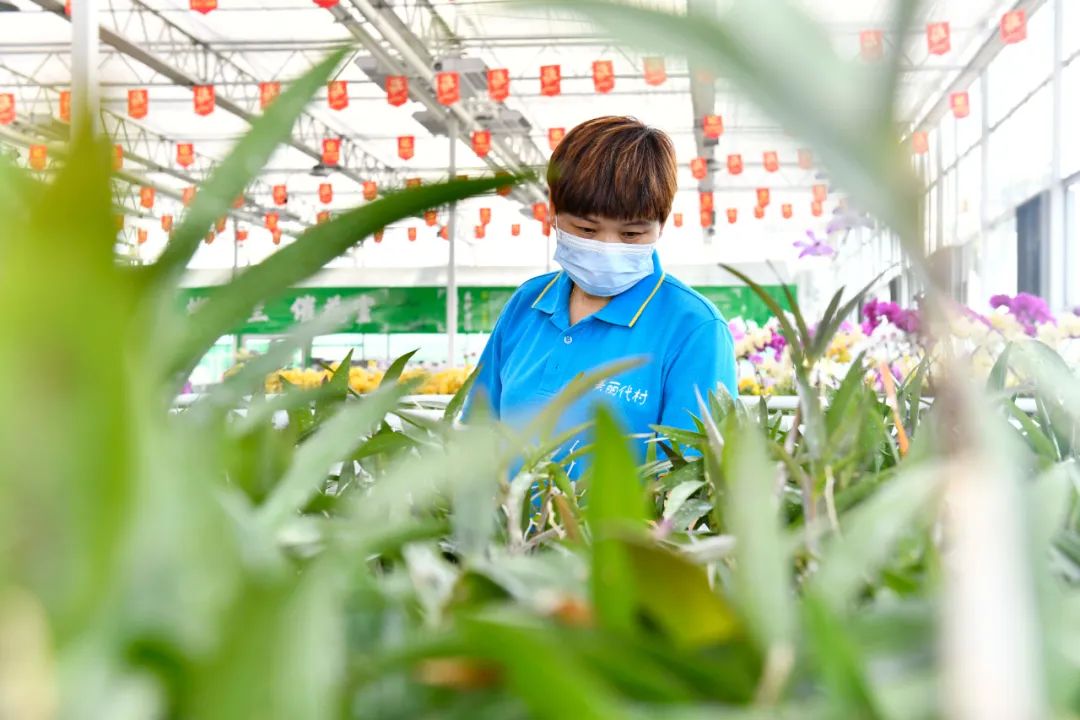 ▲5月18日,在臨沂市蘭陵縣代村國家級現(xiàn)代農(nóng)業(yè)示范園,工作人員在打理蝴蝶蘭。新華社記者 郭緒雷 攝