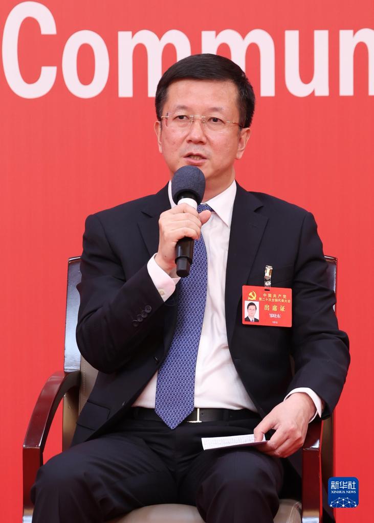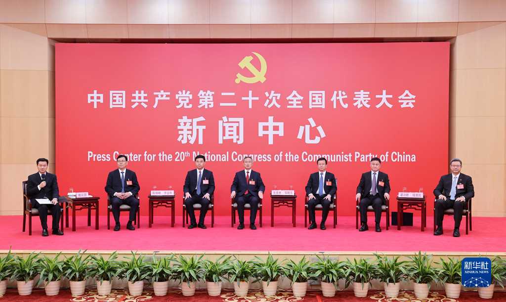 10月20日,中國(guó)共產(chǎn)黨第二十次全國(guó)代表大會(huì)新聞中心舉行集體采訪。青海、寧夏、新疆、中央和國(guó)家機(jī)關(guān)、中央金融系統(tǒng)、中央企業(yè)系統(tǒng)(在京)代表團(tuán)新聞發(fā)言人出席,介紹代表團(tuán)學(xué)習(xí)討論二十大報(bào)告情況,并回答記者提問(wèn)。新華社記者 張玉薇 攝